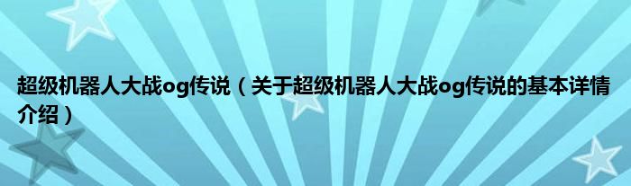 本文关于超级机器人大战og传说的基本详情介绍就讲解完毕,希望对大家有所帮助。
