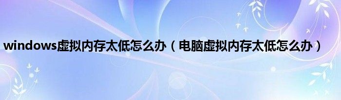 以上就是【windows虚拟内存太低怎么办,电脑虚拟内存太低怎么办】相关内容。