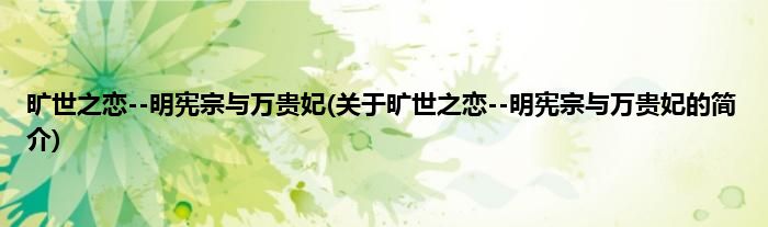 本文关于旷世之恋--明宪宗与万贵妃的简介就讲解完毕,希望对大家有所帮助。