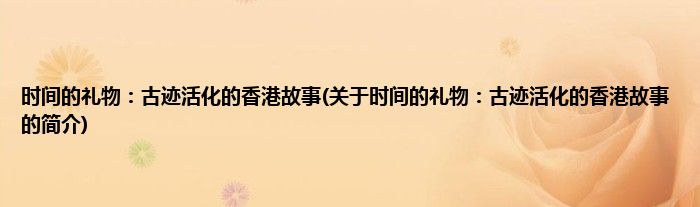 本文关于时间的礼物:古迹活化的香港故事的简介就讲解完毕,希望对大家有所帮助。