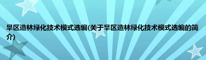 1、 《旱区造林绿化技术模式选编》是2018年中国林业出版社出版的图书,作者是国家林业和草原局造林绿化管理司。