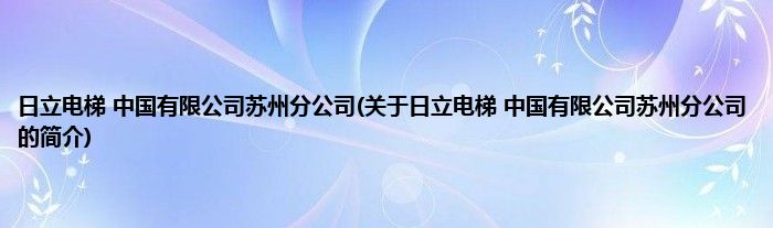 大家好,日立电梯 中国有限公司苏州分公司,关于日立电梯 中国有限公司苏州分公司的简介很多人还不知道,现在让我们一起来看看吧!