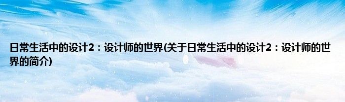 大家好,日常生活中的设计2:设计师的世界,关于日常生活中的设计2:设计师的世界的简介很多人还不知道,现在让我们一起来看看吧!