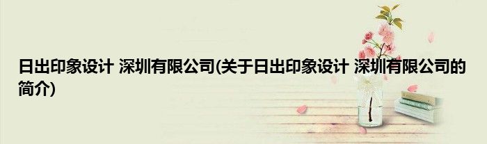 本文关于日出印象设计 深圳有限公司的简介就讲解完毕,希望对大家有所帮助。