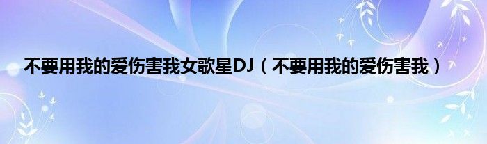 大家好,小问来为大家解答以上问题。不要用我的爱伤害我女歌星DJ,不要用我的爱伤害我这个很多人还不知道,现在让我们一起来看看吧!
