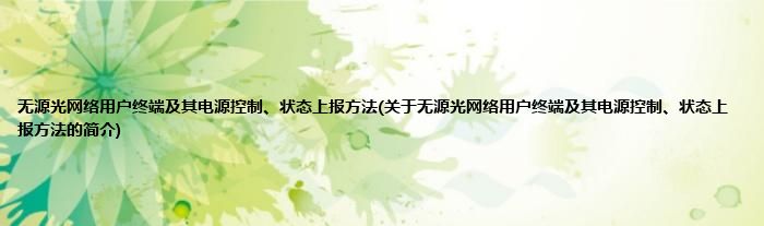 大家好,无源光网络用户终端及其电源控制、状态上报方法,关于无源光网络用户终端及其电源控制、状态上报方法的简介很多人还不知道,现在让我们一起来看看吧!
