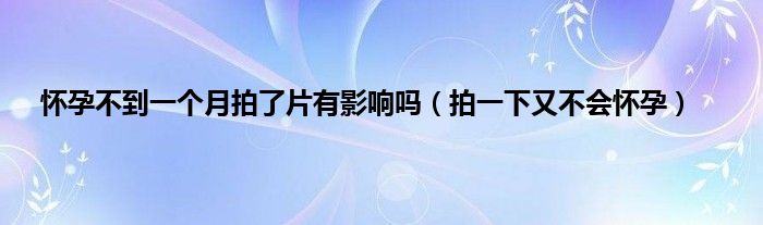 大家好,小问来为大家解答以上问题。怀孕不到一个月拍了片有影响吗,拍一下又不会怀孕这个很多人还不知道,现在让我们一起来看看吧!