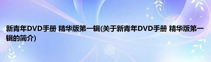 本文关于新青年DVD手册 精华版第一辑的简介就讲解完毕,希望对大家有所帮助。