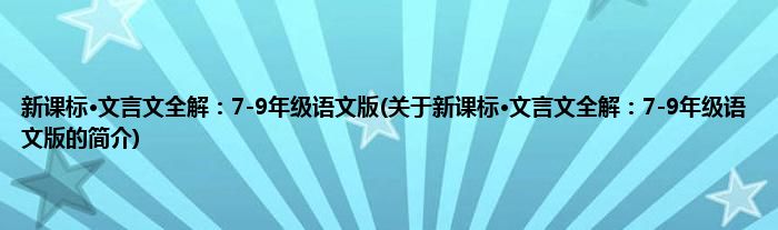 本文关于新课标·文言文全解:7-9年级语文版的简介就讲解完毕,希望对大家有所帮助。