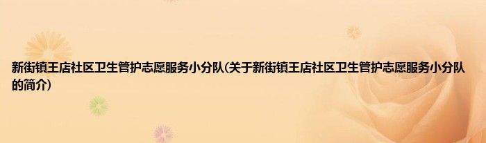 本文关于新街镇王店社区卫生管护志愿服务小分队的简介就讲解完毕,希望对大家有所帮助。