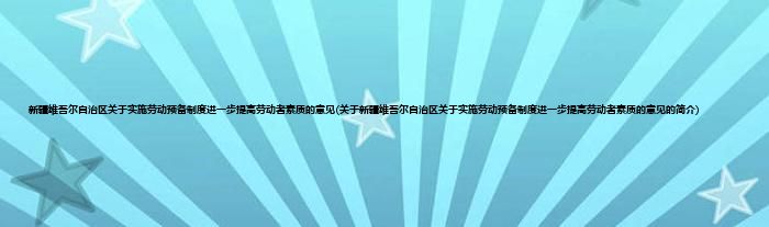 本文关于新疆维吾尔自治区关于实施劳动预备制度进一步提高劳动者素质的意见的简介就讲解完毕,希望对大家有所帮助。