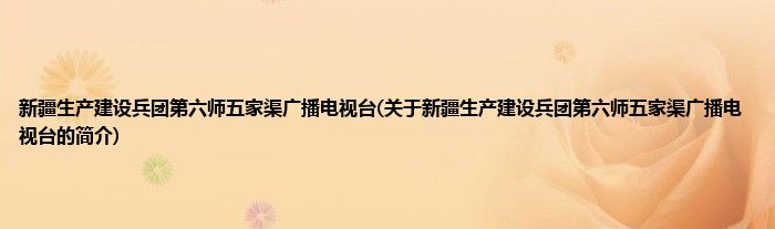 1、 新疆生产建设兵团第六师五家渠广播电视台是新疆生产建设兵团第六师五家渠广播电视机构。