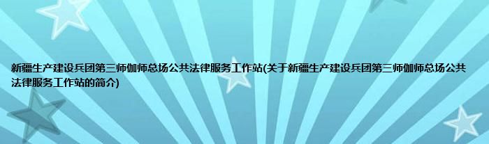 本文关于新疆生产建设兵团第三师伽师总场公共法律服务工作站的简介就讲解完毕,希望对大家有所帮助。