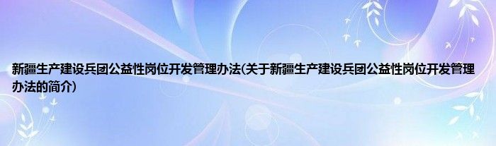 本文关于新疆生产建设兵团公益性岗位开发管理办法的简介就讲解完毕,希望对大家有所帮助。