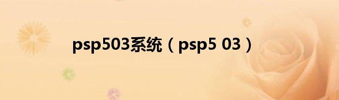大家好,小问来为大家解答以上问题。psp503系统,psp5 03这个很多人还不知道,现在让我们一起来看看吧!