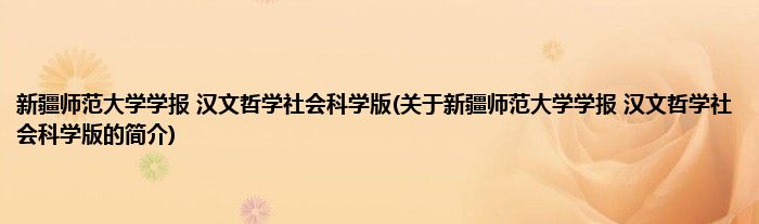 本文关于新疆师范大学学报 汉文哲学社会科学版的简介就讲解完毕,希望对大家有所帮助。