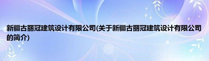 本文关于新疆古丽冠建筑设计有限公司的简介就讲解完毕,希望对大家有所帮助。