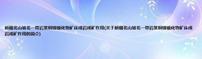 本文关于新疆北山坡北一带岩浆铜镍硫化物矿床成岩成矿作用的简介就讲解完毕,希望对大家有所帮助。
