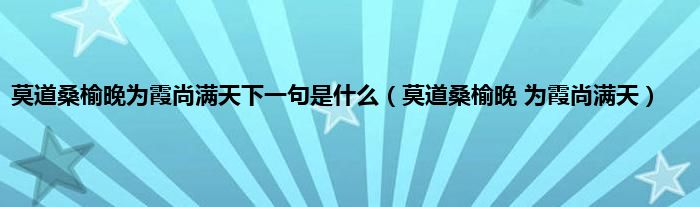以上就是【莫道桑榆晚为霞尚满天下一句是什么,莫道桑榆晚 为霞尚满天】相关内容。