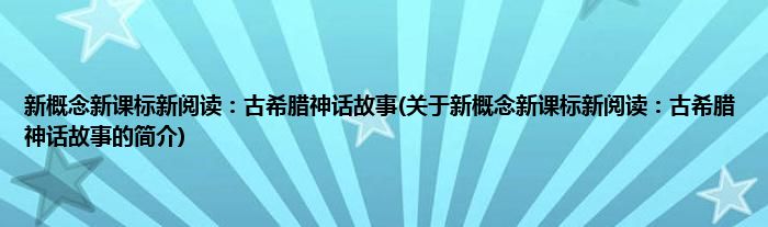 本文关于新概念新课标新阅读:古希腊神话故事的简介就讲解完毕,希望对大家有所帮助。