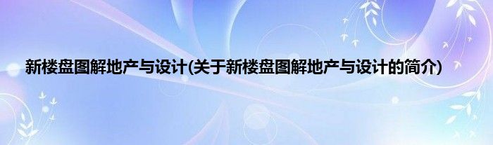 本文关于新楼盘图解地产与设计的简介就讲解完毕,希望对大家有所帮助。