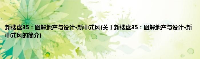 大家好,新楼盘35:图解地产与设计·新中式风,关于新楼盘35:图解地产与设计·新中式风的简介很多人还不知道,现在让我们一起来看看吧!