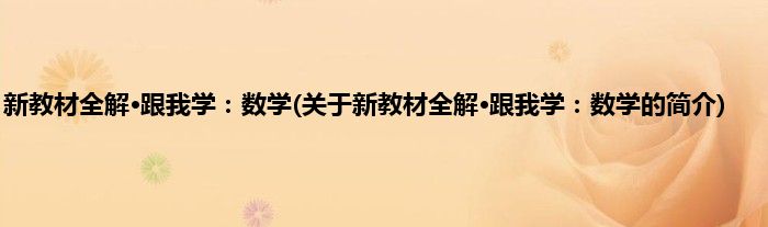 大家好,新教材全解·跟我学:数学,关于新教材全解·跟我学:数学的简介很多人还不知道,现在让我们一起来看看吧!