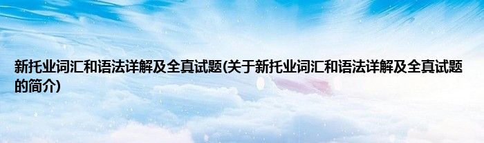 本文关于新托业词汇和语法详解及全真试题的简介就讲解完毕,希望对大家有所帮助。