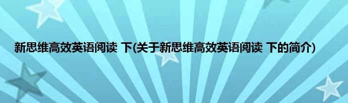本文关于新思维高效英语阅读 下的简介就讲解完毕,希望对大家有所帮助。