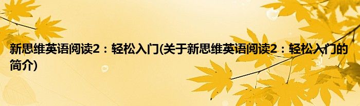 本文关于新思维英语阅读2:轻松入门的简介就讲解完毕,希望对大家有所帮助。