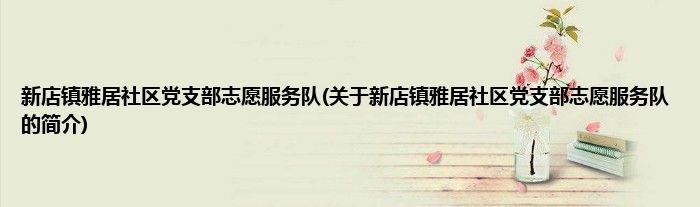 本文关于新店镇雅居社区党支部志愿服务队的简介就讲解完毕,希望对大家有所帮助。