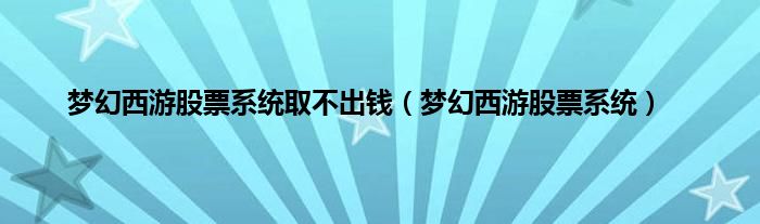 以上就是【梦幻西游股票系统取不出钱,梦幻西游股票系统】相关内容。