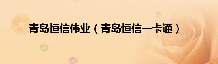 大家好,小问来为大家解答以上问题。青岛恒信伟业,青岛恒信一卡通这个很多人还不知道,现在让我们一起来看看吧!