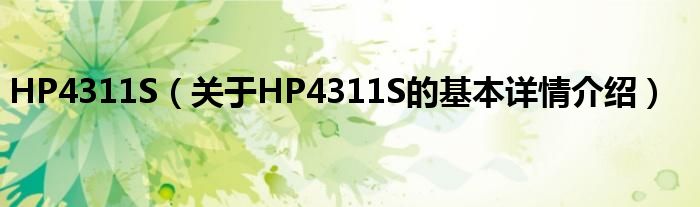 本文关于HP4311S的基本详情介绍就讲解完毕,希望对大家有所帮助。