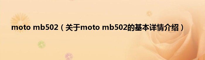 本文关于moto mb502的基本详情介绍就讲解完毕,希望对大家有所帮助。