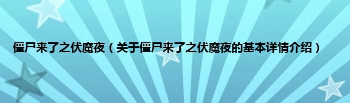 本文关于僵尸来了之伏魔夜的基本详情介绍就讲解完毕,希望对大家有所帮助。