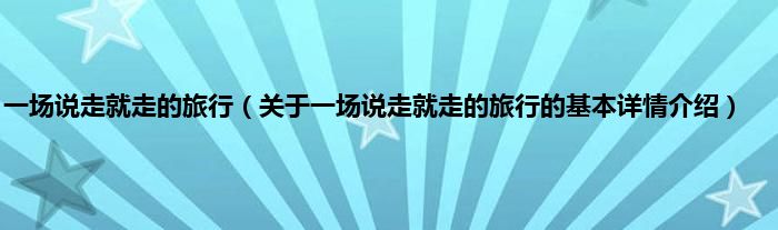本文关于一场说走就走的旅行的基本详情介绍就讲解完毕,希望对大家有所帮助。