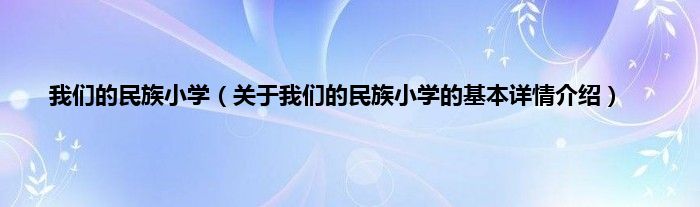 我们的民族小学(关于我们的民族小学的基本详情介绍)