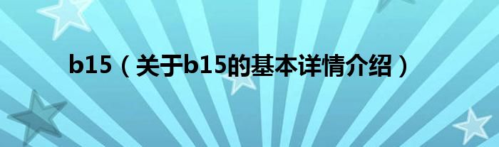 大家好我是小蝌蚪,b15,关于b15的基本详情介绍很多人还不知道,那么现在让我们一起来看看吧!