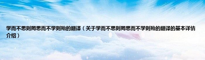 本文关于学而不思则罔思而不学则殆的翻译的基本详情介绍就讲解完毕,希望对大家有所帮助。