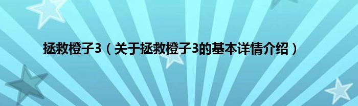 本文关于拯救橙子3的基本详情介绍就讲解完毕,希望对大家有所帮助。