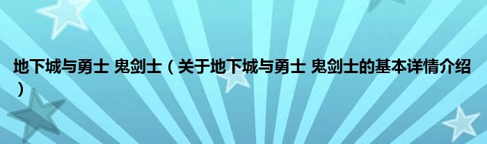 本文关于地下城与勇士 鬼剑士的基本详情介绍就讲解完毕,希望对大家有所帮助。