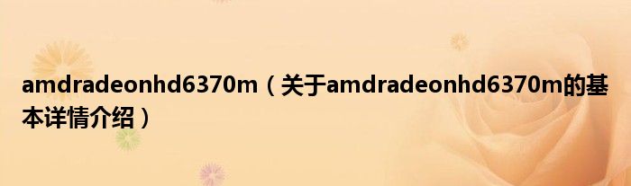 amdradeonhd6370m(关于amdradeonhd6370m的基本详情介绍)