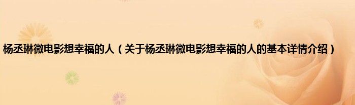 杨丞琳微电影想幸福的人(关于杨丞琳微电影想幸福的人的基本详情介绍)