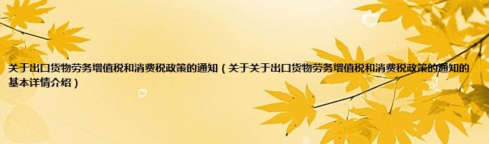 关于出口货物劳务增值税和消费税政策的通知(关于关于出口货物劳务增值税和消费税政策的通知的基本详情介绍)