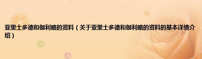 本文关于亚里士多德和伽利略的资料的基本详情介绍就讲解完毕,希望对大家有所帮助。