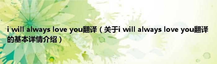 本文关于i will always love you翻译的基本详情介绍就讲解完毕,希望对大家有所帮助。