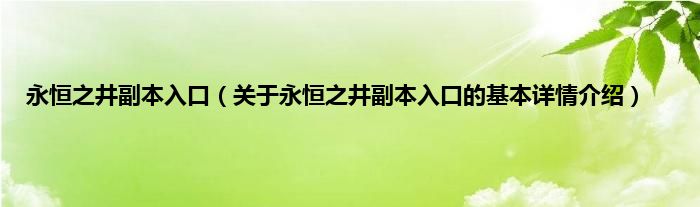本文关于永恒之井副本入口的基本详情介绍就讲解完毕,希望对大家有所帮助。