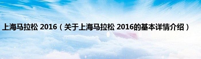 本文关于上海马拉松 2016的基本详情介绍就讲解完毕,希望对大家有所帮助。