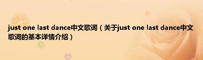 just one last dance中文歌词(关于just one last dance中文歌词的基本详情介绍)